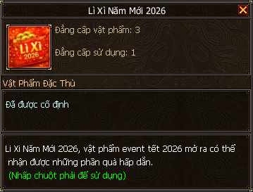 - 3 Lì Xì Năm Mới 2026: lì xì chỉ mở vào ngày đầu Xuân (ngày 17/2), khi mở sẽ nhận được rất nhiều quà tặng “bất ngờ”