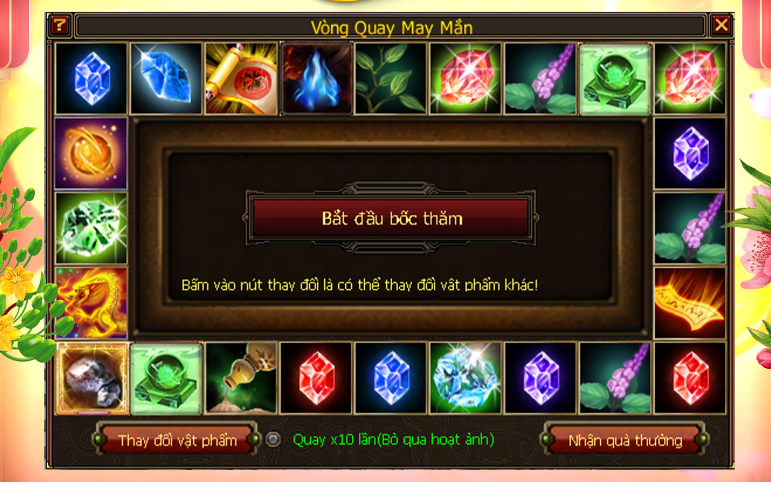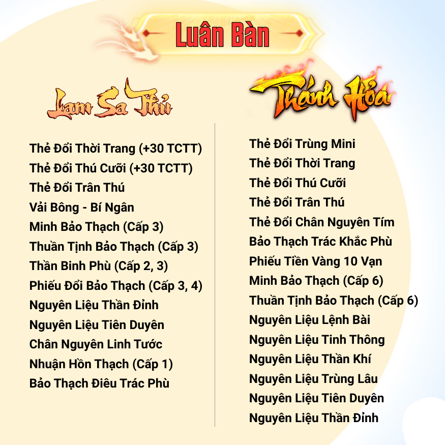 Phần thởng tại Luân Bàn được thay đổi ngẫu nhiên theo danh sách